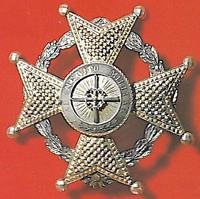Sus insignias, caso único, eran dos: una cruz y una placa que, por ser para la Tropa, eran de plata y de ese modo se diferenciaban de las de los Oficiales que eran esmaltadas.
