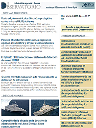 El Observatorio es la nueva sección dedicada a la Industria de Seguridad y Defensa dentro del diario digital de ATENEA. Una nueva sección que acumula más de cinco años de experiencia gracias a su antigua edición en papel y que, se dedica en exclusiva a las noticias seleccionadas de la actualidad en referencia a los sistemas de armas, materiales, logística y tendencias de las Fuerzas Armadas, así como noticias relevantes procedentes de empresas relacionadas con el sector.